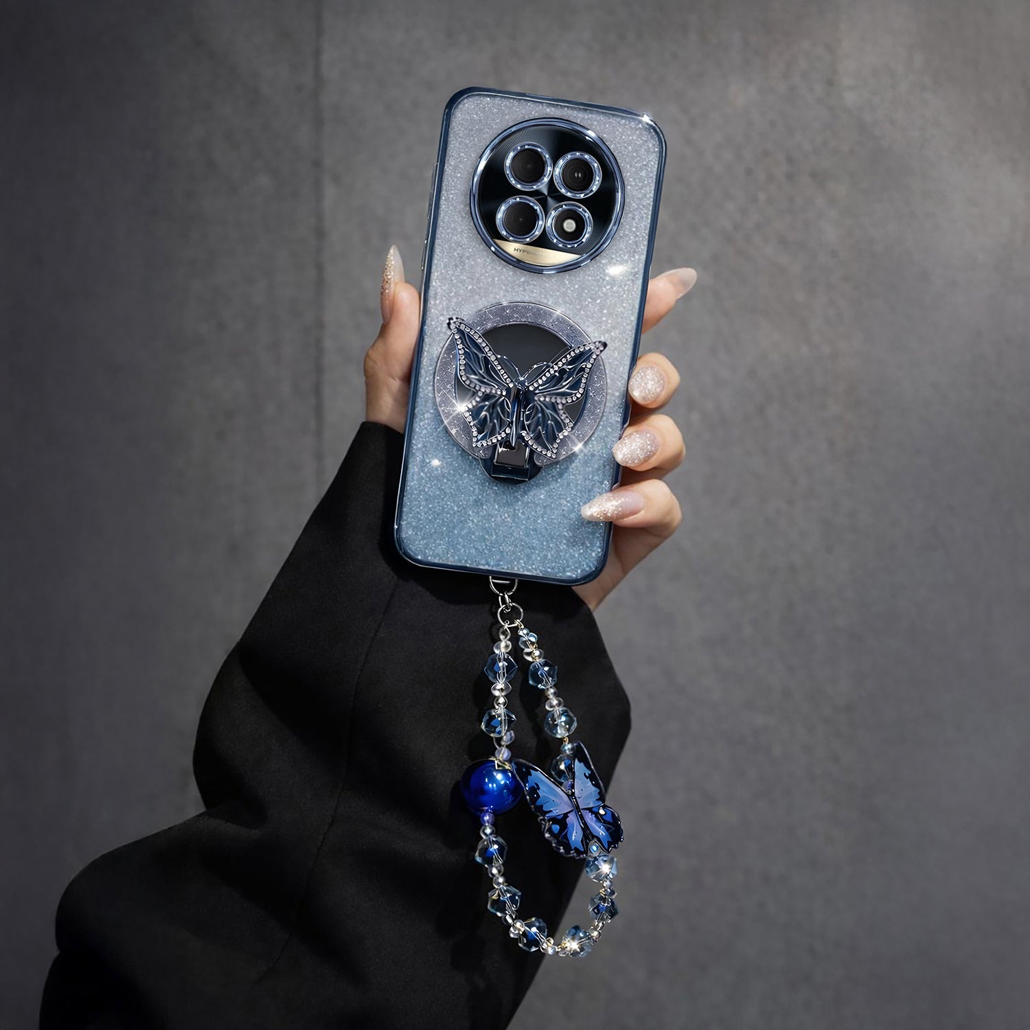 Realme 13 Pro+ 5G Stunning Shimmer Electroplating Butterfly Stand Charm Case