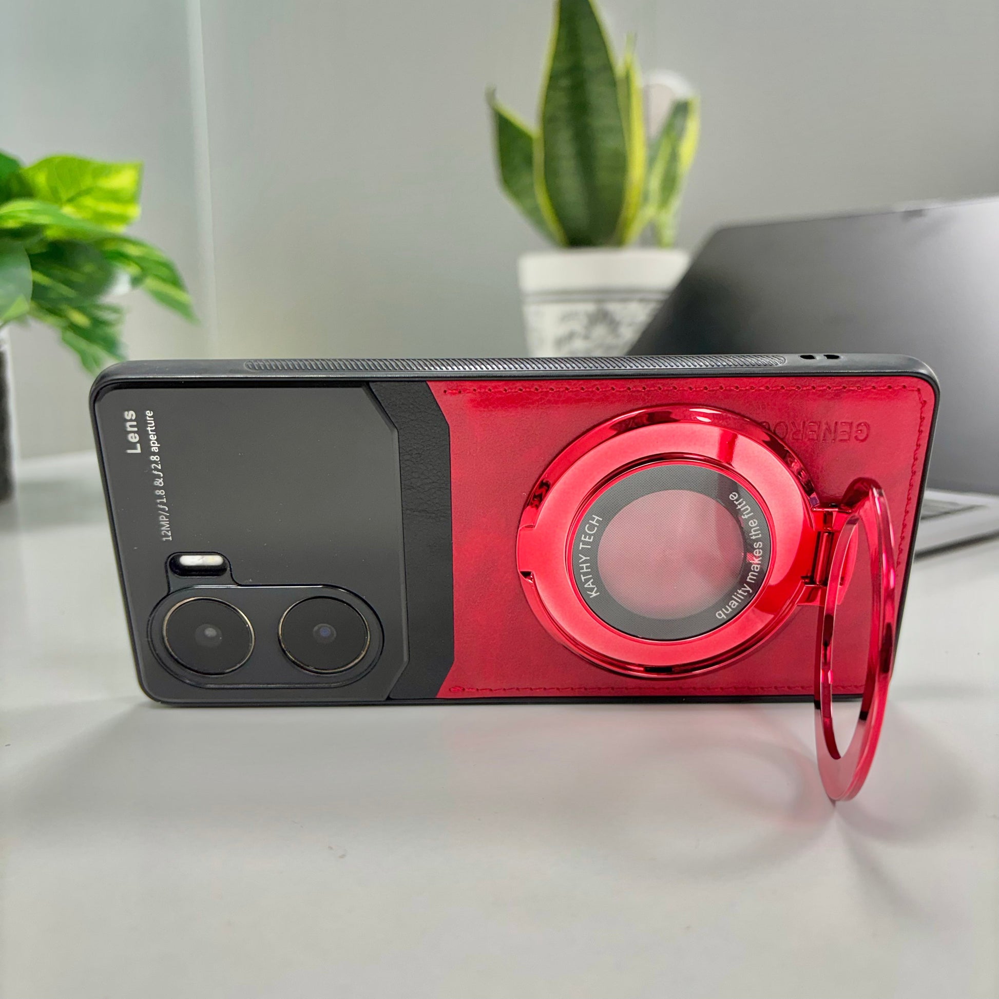 Vivo V29e 5G Original Luxury Leather Lens Magnifier Ring Stand Case